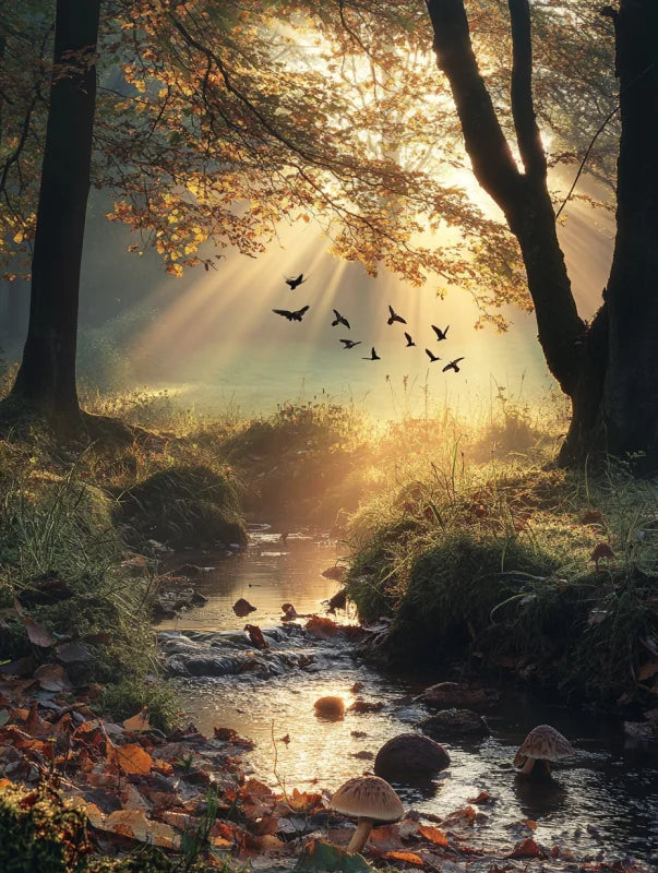 Golden Stream - Landschap schilderij - 40 x 60 cm / Plexiglas / Zonder lijst is nabesteld en wordt verzonden zodra het weer op voorraad is.